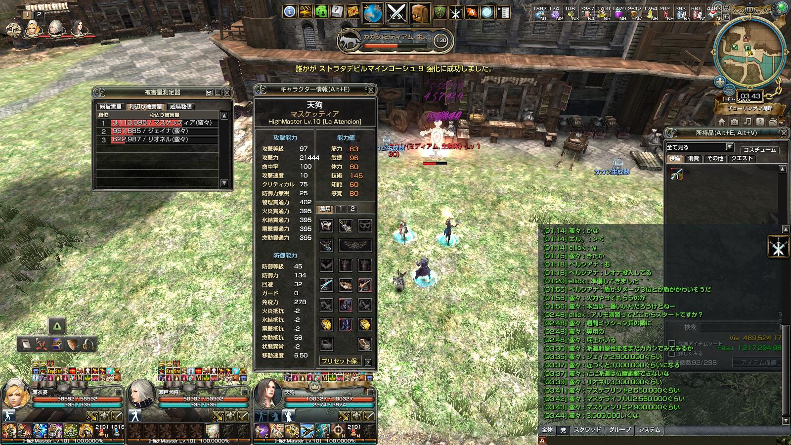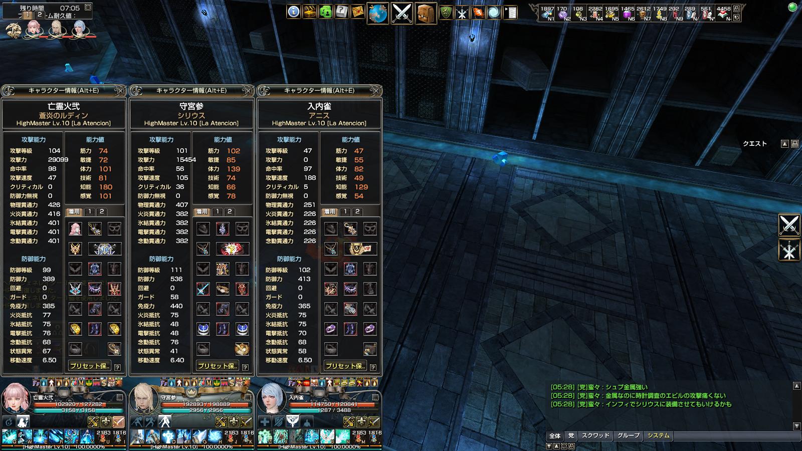 ブルーニ>士官リオ=リオネル>アンリミ≧ジェイナ>フリント=ライフルU>>>技術カトリ