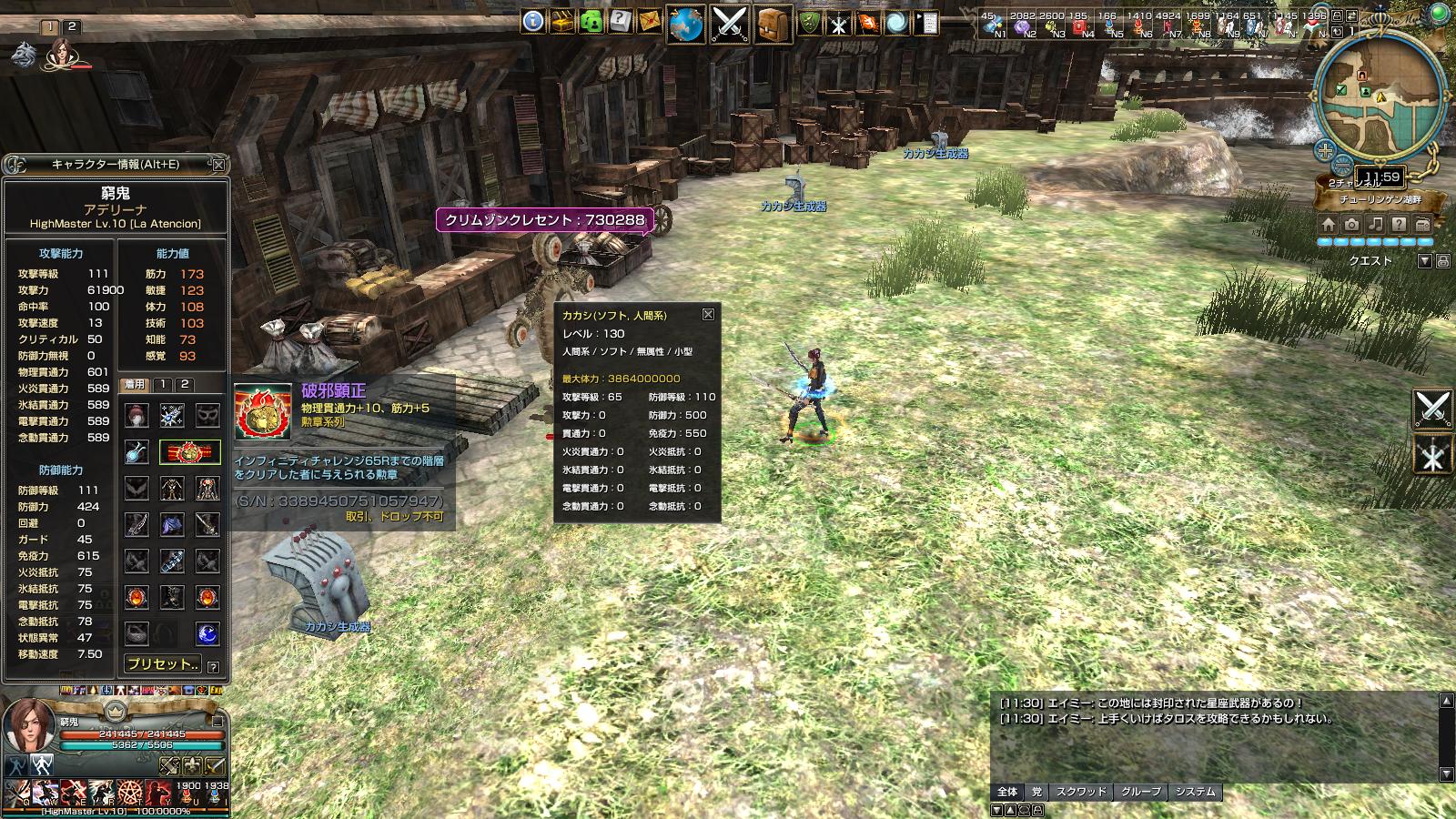 MMOゲーム グラナド・エスパダやってます。 グラナド・エスパダ サーバー eden党 蛮々家門 です。 youtube動画もあります。 勲章比べ物理編。 ↑ アデリーナ ペットナシアルティメットポーションあり バフ無し 家門スキルはヘカテ カカシは防御250に免疫550 アデリーナの貫通591 こっちはダメージのブレはないようでした。 前回載せたので勲章性能は省略 ↑ レックスハード勲章 14,280,387 ↑ 破邪顕正 14,021,542 ↑ 12周年勲章 13,861,672 ↑ イノリー勲章 13,115,396 ↑ 五芒勲章 13,709,172 ↑ 10周年勲章 13,861,672 ↑ 11周年勲章 13,535,515 ↑ 9周年勲章 13,316,020 ↑ 緋色勲章 13,175,518 て感じでした。 物理もやっぱレックスハード勲章が一番高い。 レックスハード>破邪>12=10>五芒>11>9>緋色=イノリー ですね。 そんで、カカシの防御を倍の500にすると……。 ↑ 破邪勲章 730,288 ↑ レックスハード勲章 714,019 ↑ 10周年勲章(12周年勲章) 749,279 という結果に。 10=12>破邪>レックスハード うーん。物理は難しい……。