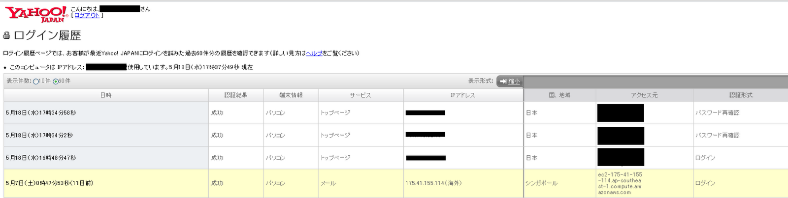 Yahoo! JAPANの『ログイン履歴』というものをご覧になったことがあるだろうか?