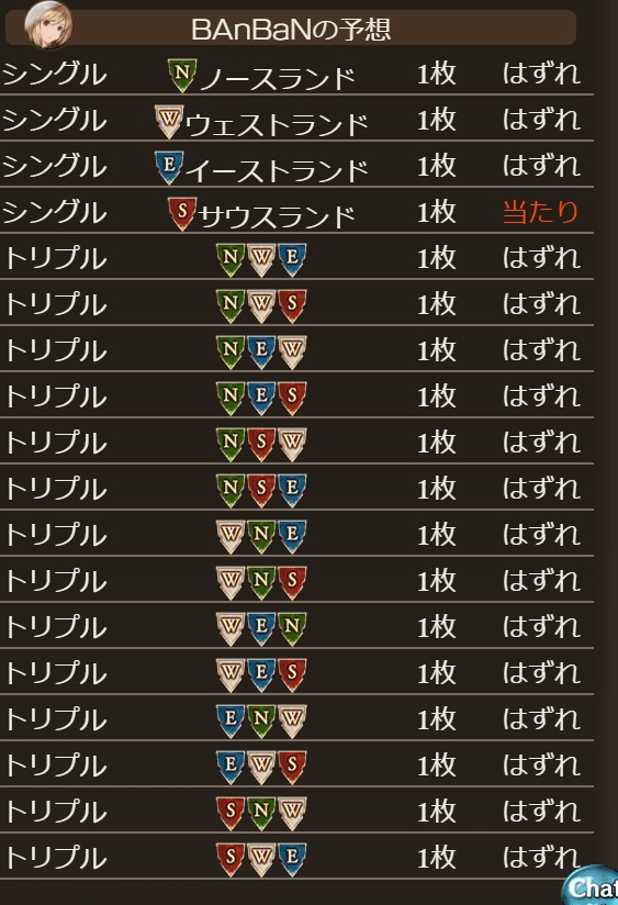 ベッティングカードの結果