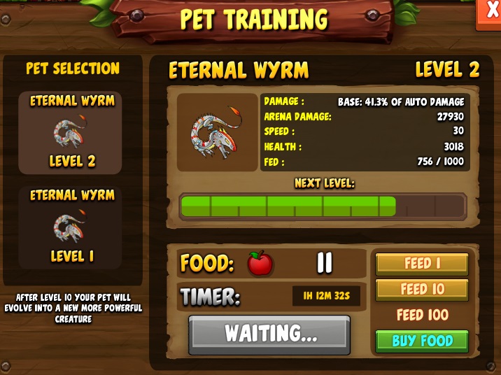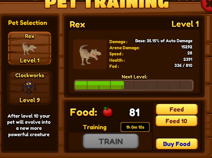 ペットのアップグレード状況。