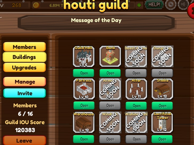我がhouti guildの施設状況。