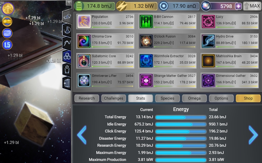 アップグレードのクリックダメージずっと放置してたけど最近一気に上げたから