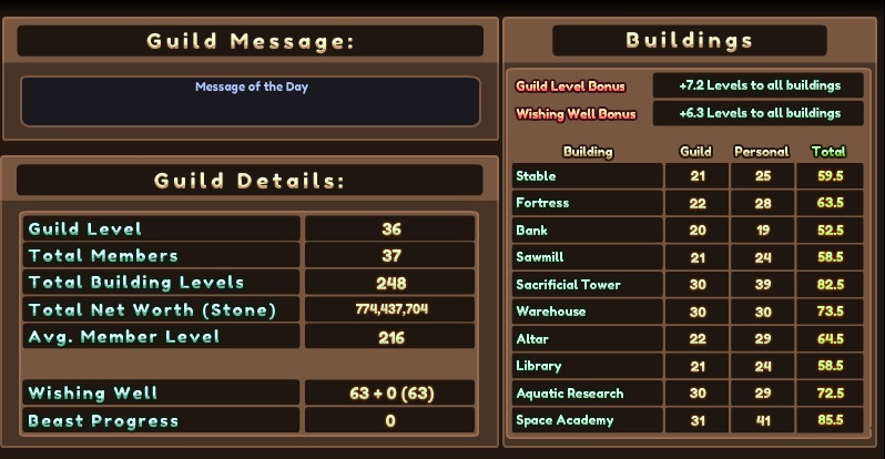 私の所属するギルド houti guild の状態。