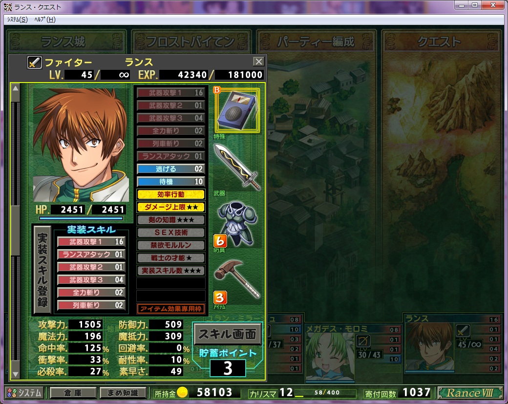 クリア時のランスLv45.
