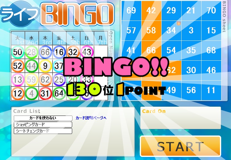 今週のライフカードビンゴの結果。