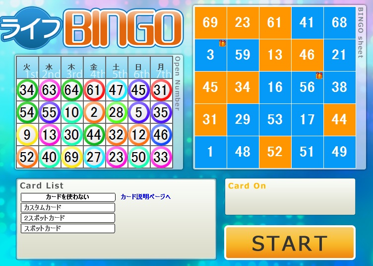 今週のライフカードビンゴの結果。