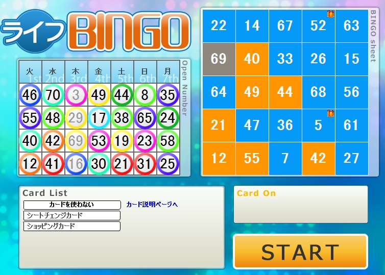 今週のライフカードビンゴの結果。