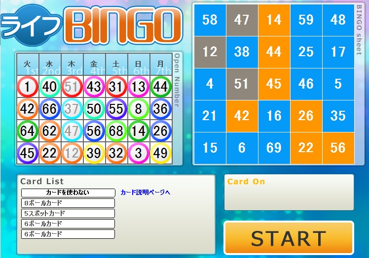 今週のライフカードビンゴの結果。