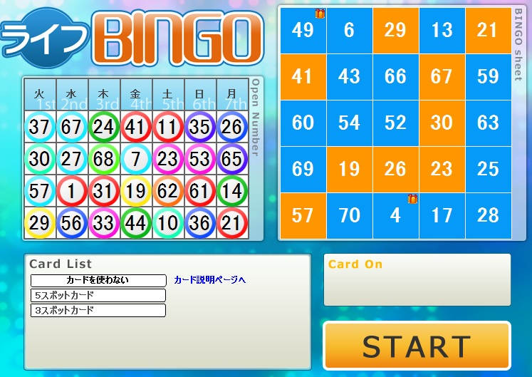 今週のライフカードビンゴの結果。