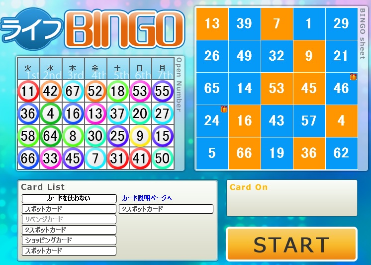 今週のライフカードビンゴの結果。