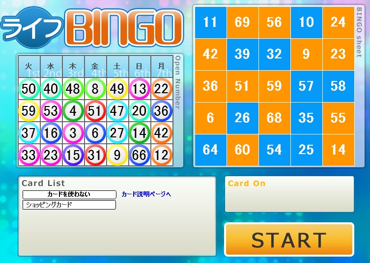 今週のライフカードビンゴの結果。