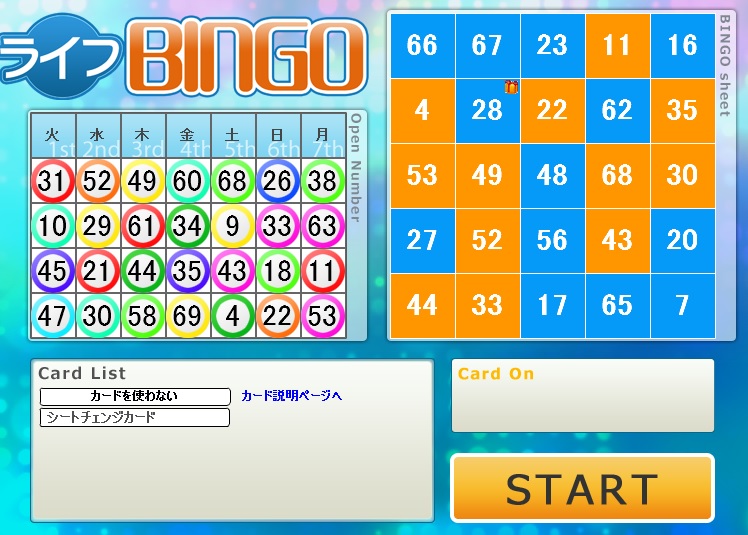 今週のライフカードビンゴの結果。
