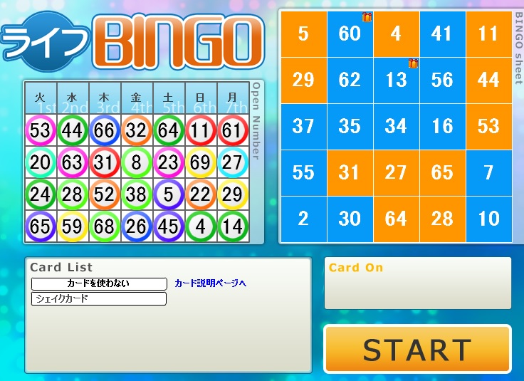 今週のライフカードビンゴの結果。