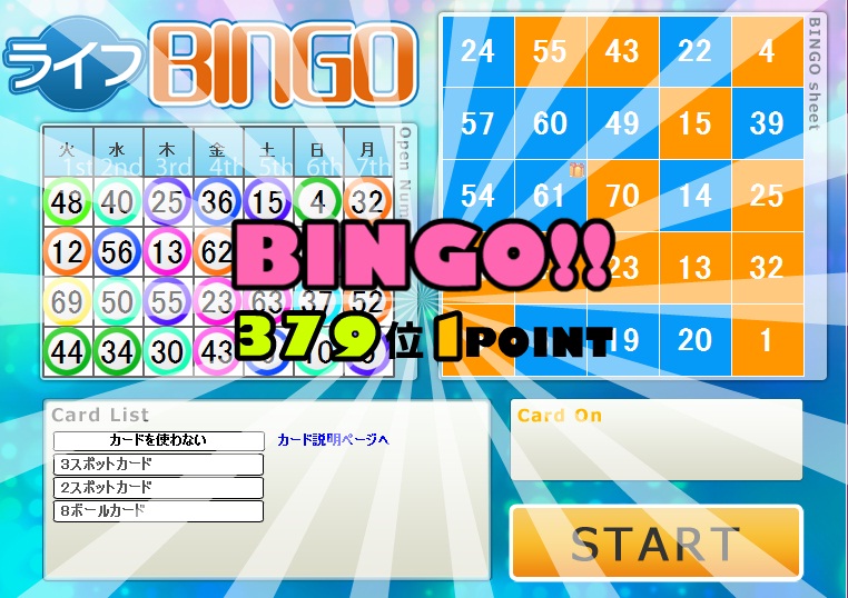 今週のライフカードビンゴの結果。