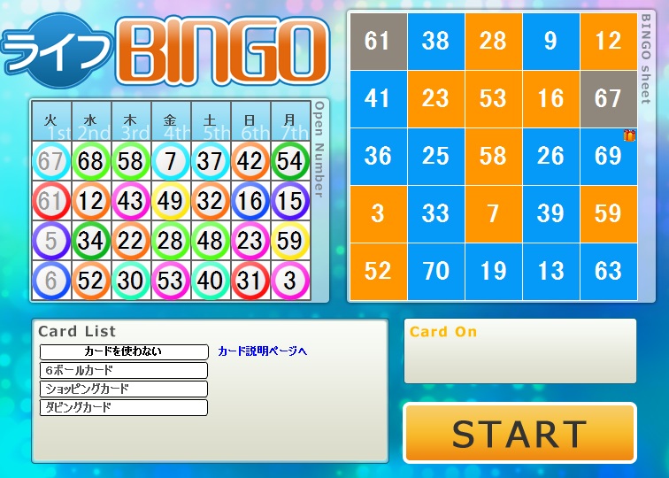 今週のライフカードビンゴの結果。