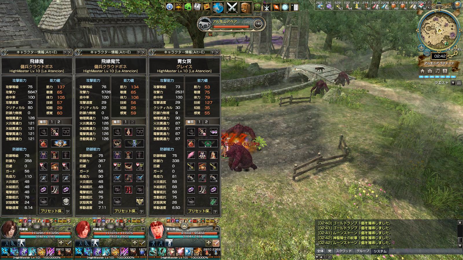ラティーナ放置の装備、メンツ。