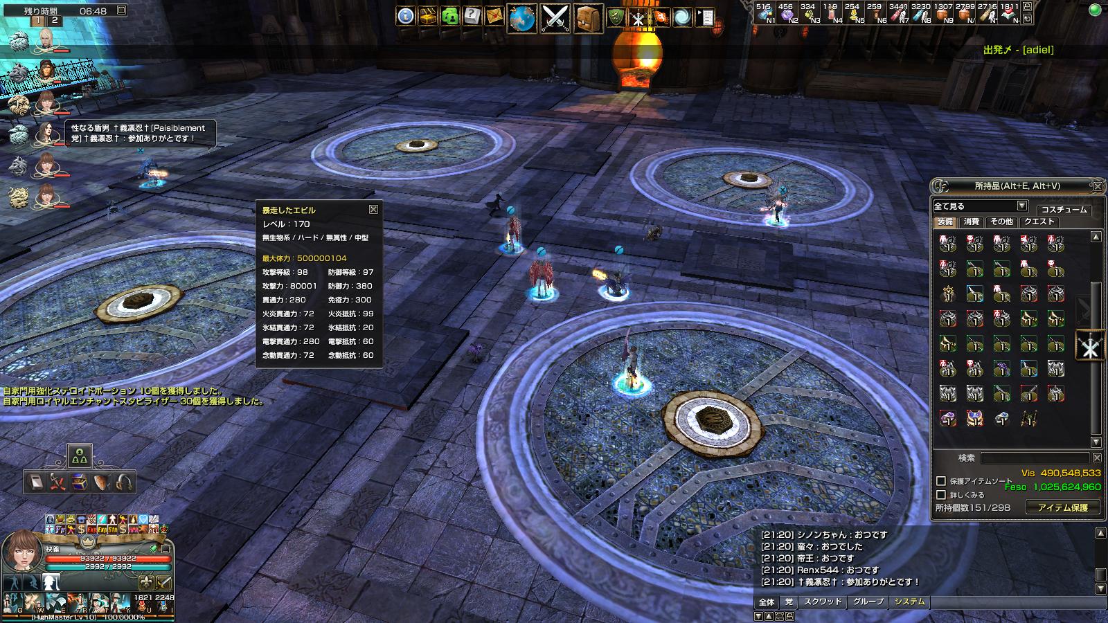時計地下系ミッションでとれた最高級ステロイドポーションを使用して、