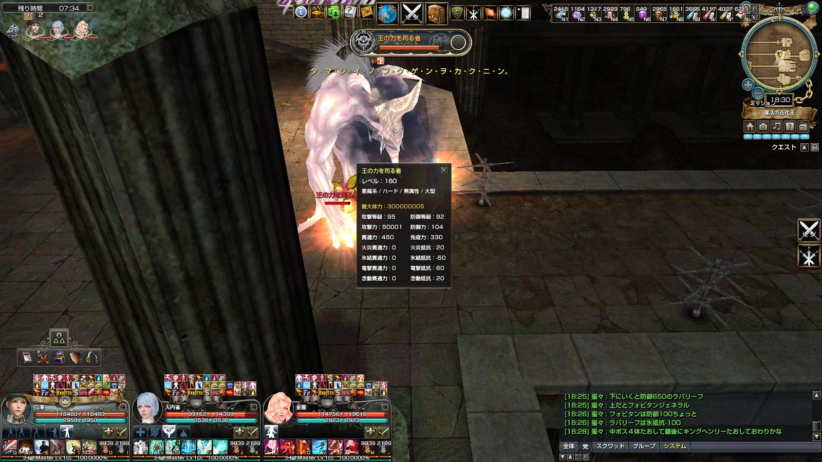 コロニーが出現して、キングヘンリーの防御等級が107になる。