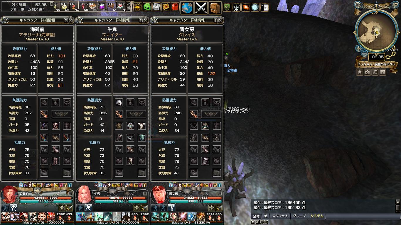 主力メンバーのステータス。
