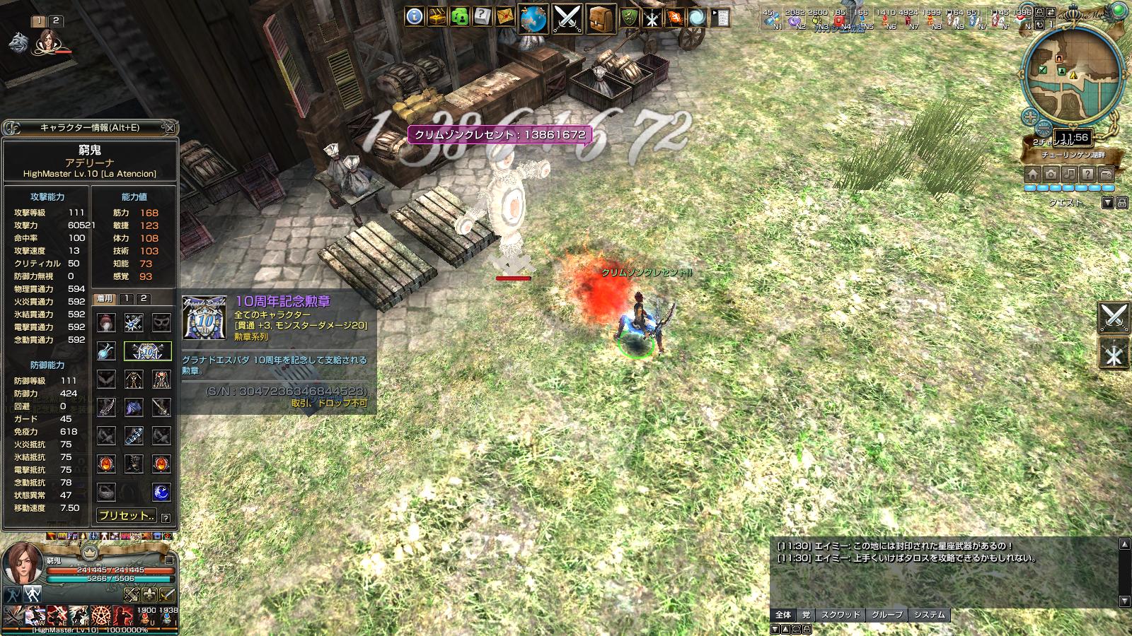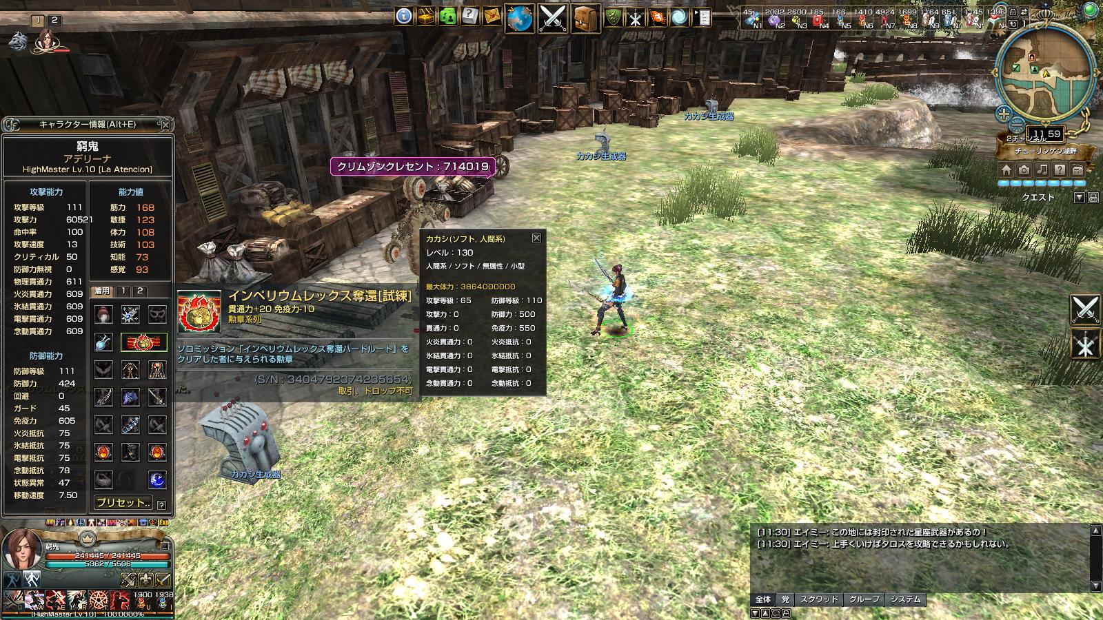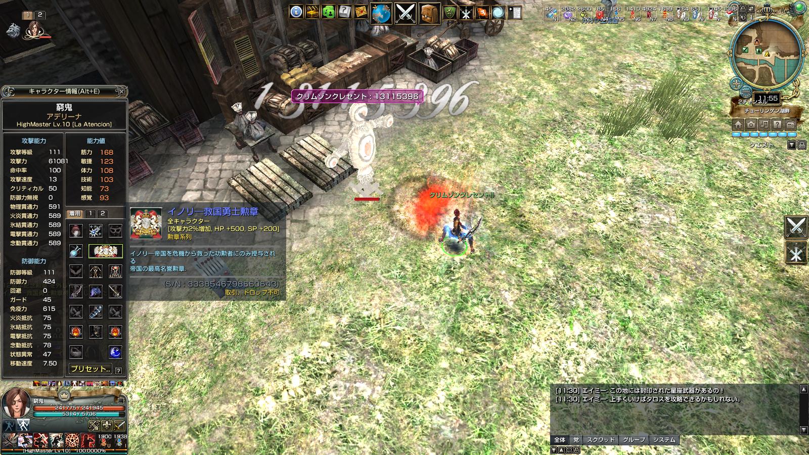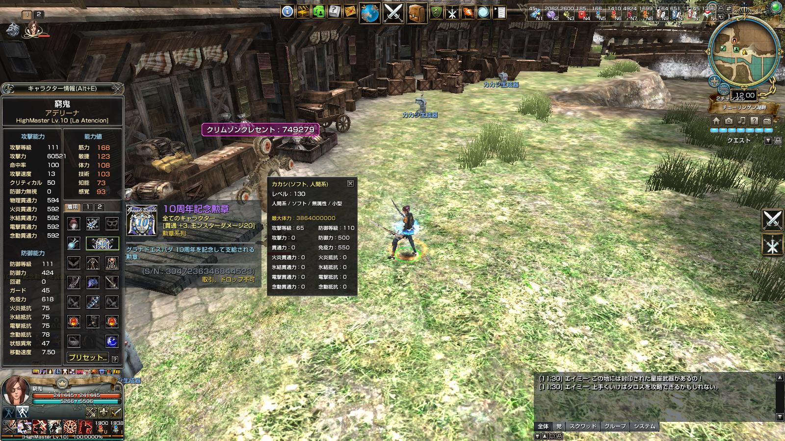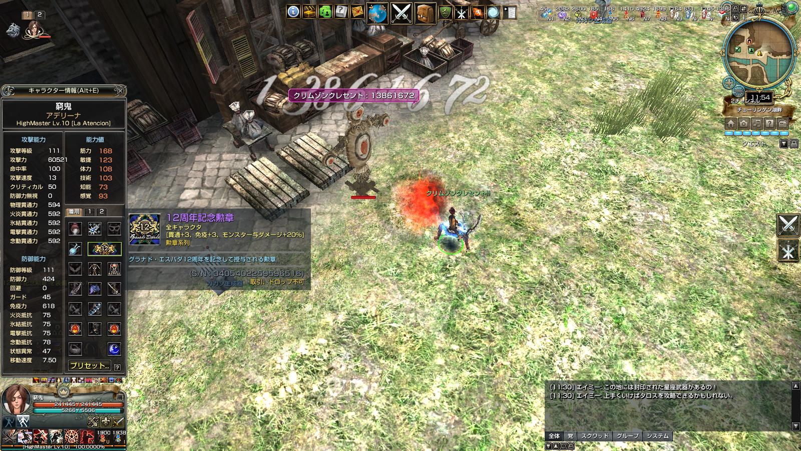 MMOゲーム グラナド・エスパダやってます。 グラナド・エスパダ サーバー eden党 蛮々家門 です。 youtube動画もあります。 勲章比べ物理編。 ↑ アデリーナ ペットナシアルティメットポーションあり バフ無し 家門スキルはヘカテ カカシは防御250に免疫550 アデリーナの貫通591 こっちはダメージのブレはないようでした。 前回載せたので勲章性能は省略 ↑ レックスハード勲章 14,280,387 ↑ 破邪顕正 14,021,542 ↑ 12周年勲章 13,861,672 ↑ イノリー勲章 13,115,396 ↑ 五芒勲章 13,709,172 ↑ 10周年勲章 13,861,672 ↑ 11周年勲章 13,535,515 ↑ 9周年勲章 13,316,020 ↑ 緋色勲章 13,175,518 て感じでした。 物理もやっぱレックスハード勲章が一番高い。 レックスハード>破邪>12=10>五芒>11>9>緋色=イノリー ですね。 そんで、カカシの防御を倍の500にすると……。 ↑ 破邪勲章 730,288 ↑ レックスハード勲章 714,019 ↑ 10周年勲章(12周年勲章) 749,279 という結果に。 10=12>破邪>レックスハード うーん。物理は難しい……。