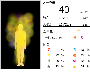 金のオーラ・・・ 最も崇高な色、英知・発想力がある、失敗を恐れない